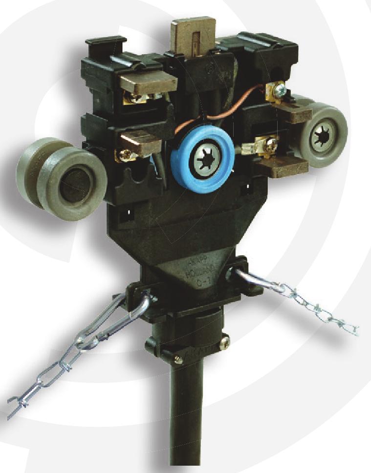 Минимальное падение напряжения. Отсутствие стыков в проводящих медных шинах позволяет избежать падения напряжения в местах стыковки, вследствие коррозии или недостаточно прочного соединения. Подпружиненные щетки токосъемника позволяют избежать скачков напряжения при движении.